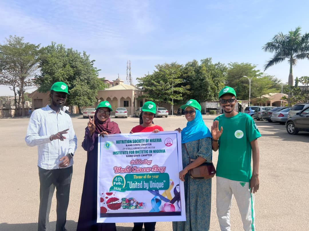 The Nutrition Society of Nigeria (NSN) Kano State Chapter, in partnership with the IDN Kano State Chapter organized a street walk on 4th February 2026 in commemoration of World Cancer Day. The awareness walk commenced at Isiyaka Rabiu Paediatric Hospital, Zoo Road, proceeded through Zaria Road, and ended at the Nutrition Department of Aminu Kano Teaching Hospital (AKTH).