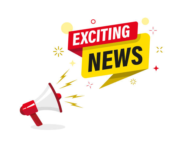 Megaphone with 'exciting news' speech bubble. Loudspeaker. Banner for business, marketing and advertising